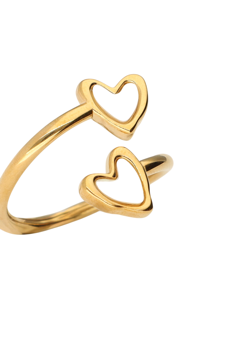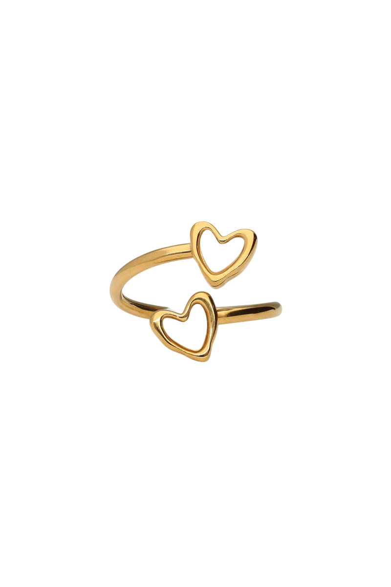 2 PEARL HEARTS RING - GOLD