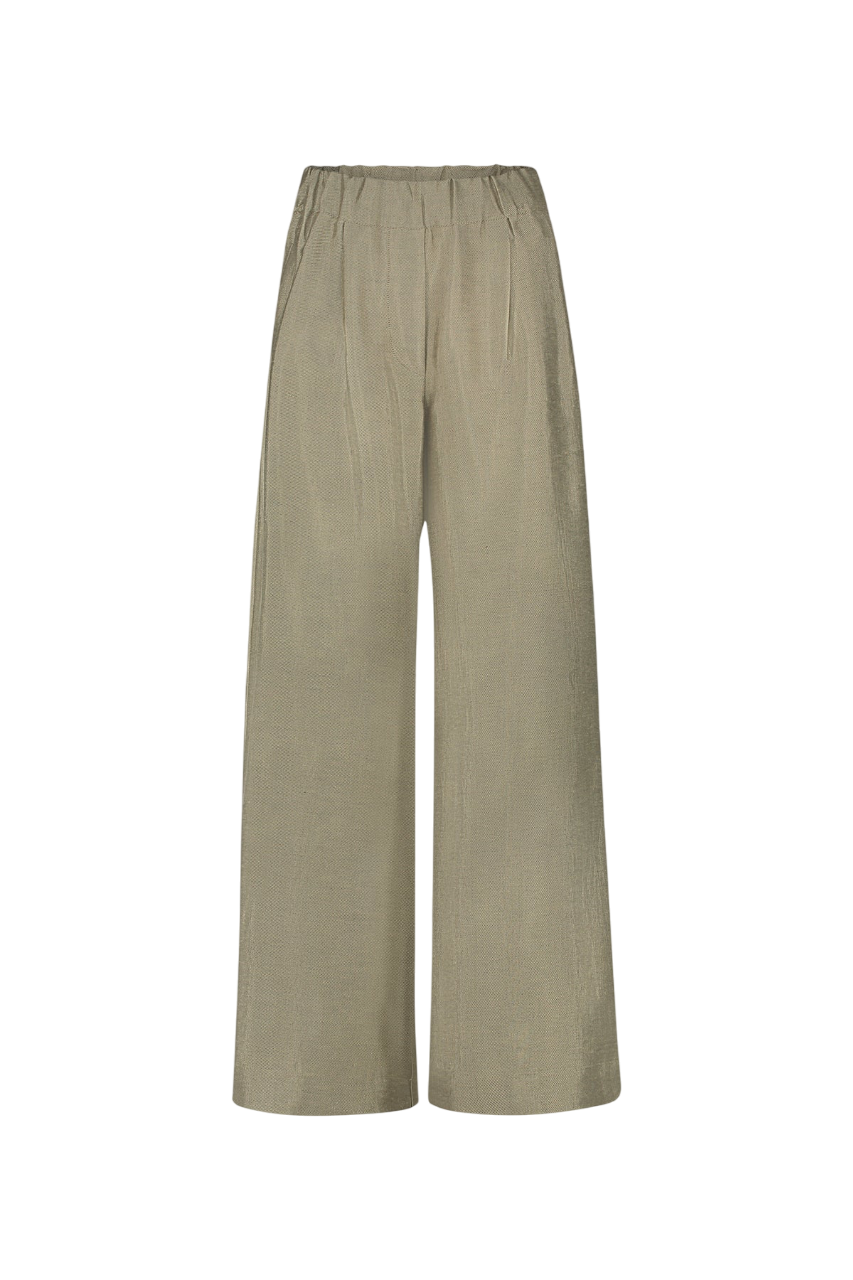 - Bijzonderheden: De broek heeft hoge taille en rechte pasvorm, elastieke band, verborgen steekzakken