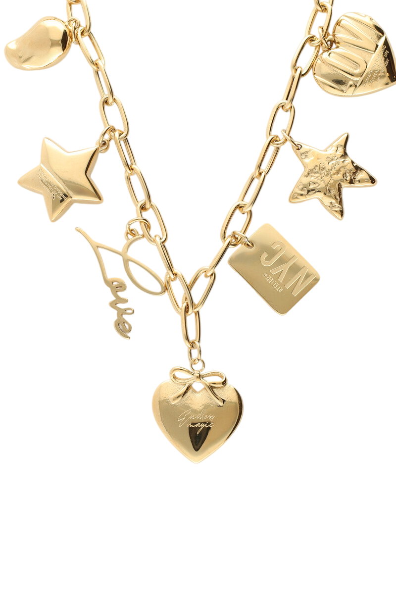BOLD MULTI CHARM LINK NECKLACE - GOLD