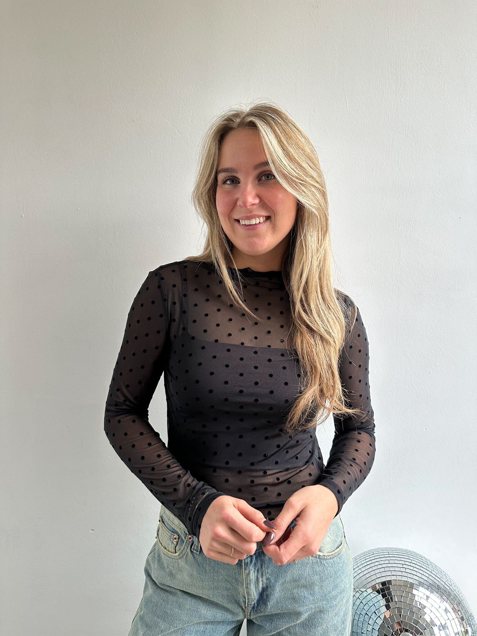 Dot mesh top - black
