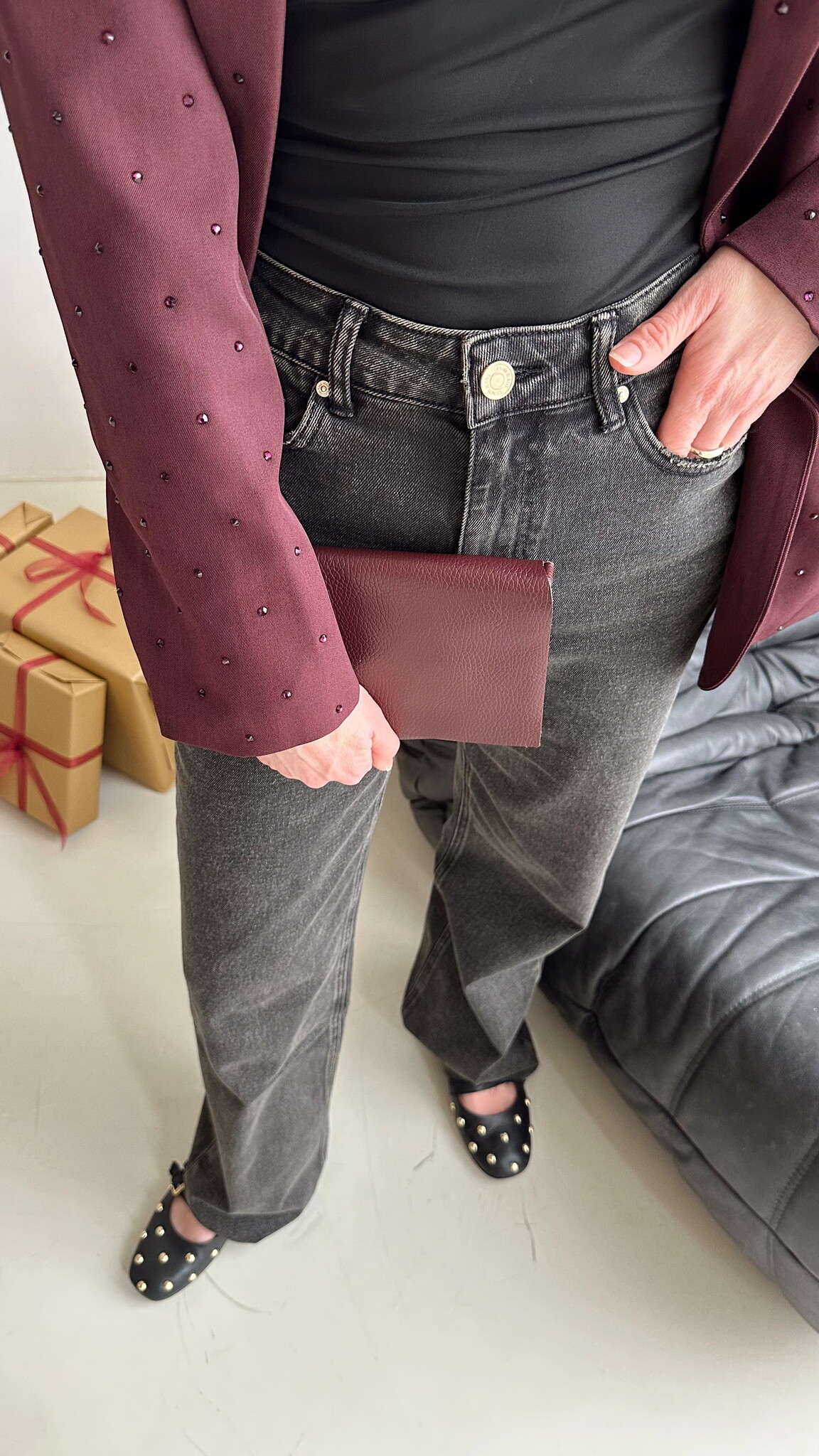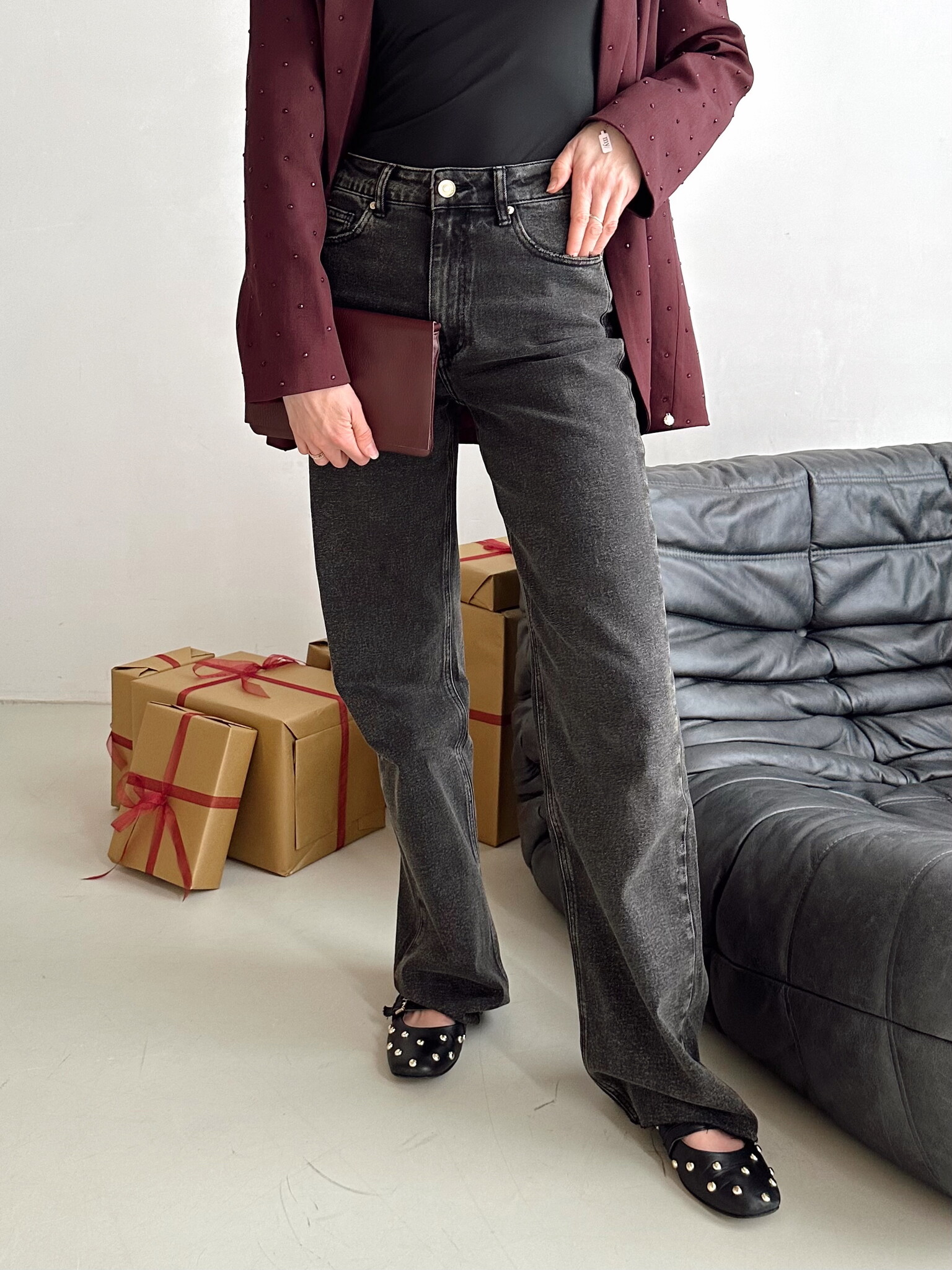 - Bijzonderheden: De broek heeft wijde pijpen, rafel onderkant, broekzakken, riem lussen