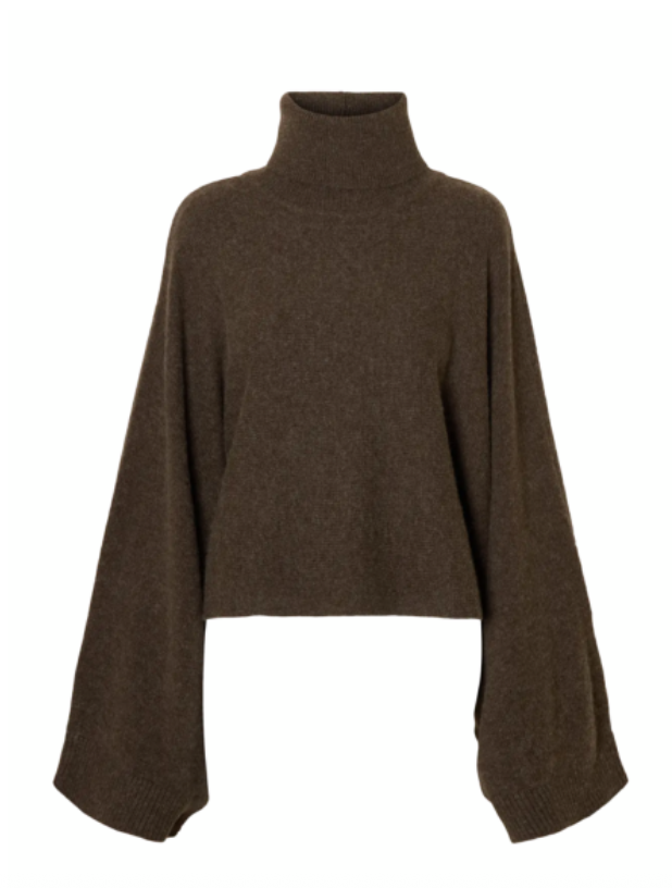 - Bijzonderheden: Uitlopende mouw, coltrui, split aan de zijkanten