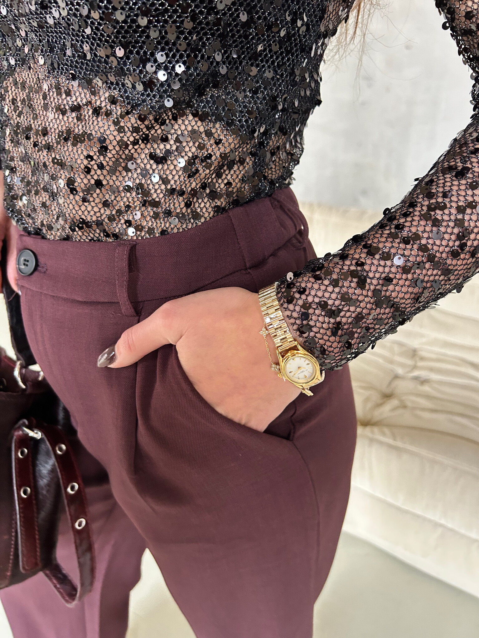 - Bijzonderheden: De top heeft lange mouwen, een hoge halslijn en glitters
