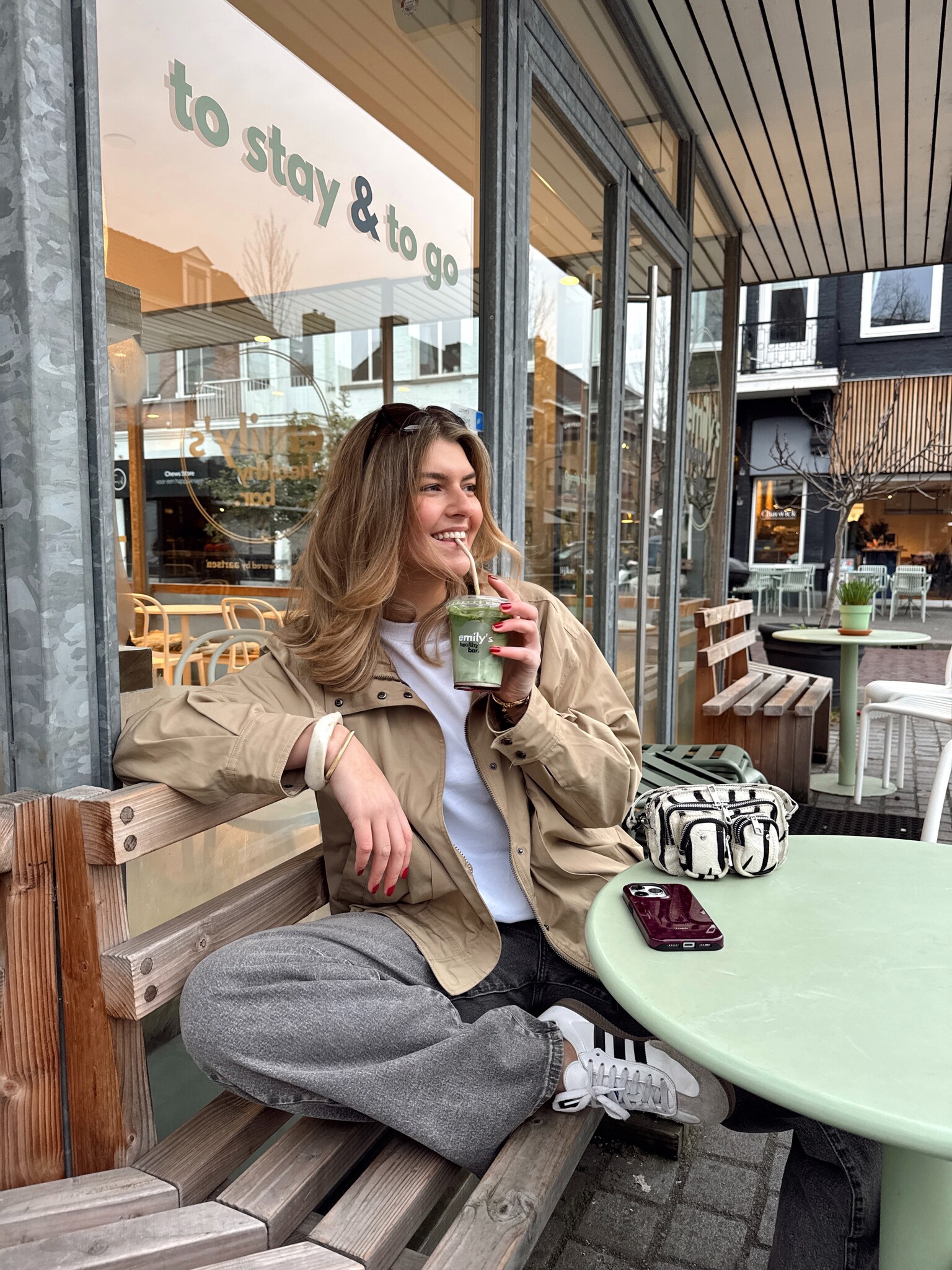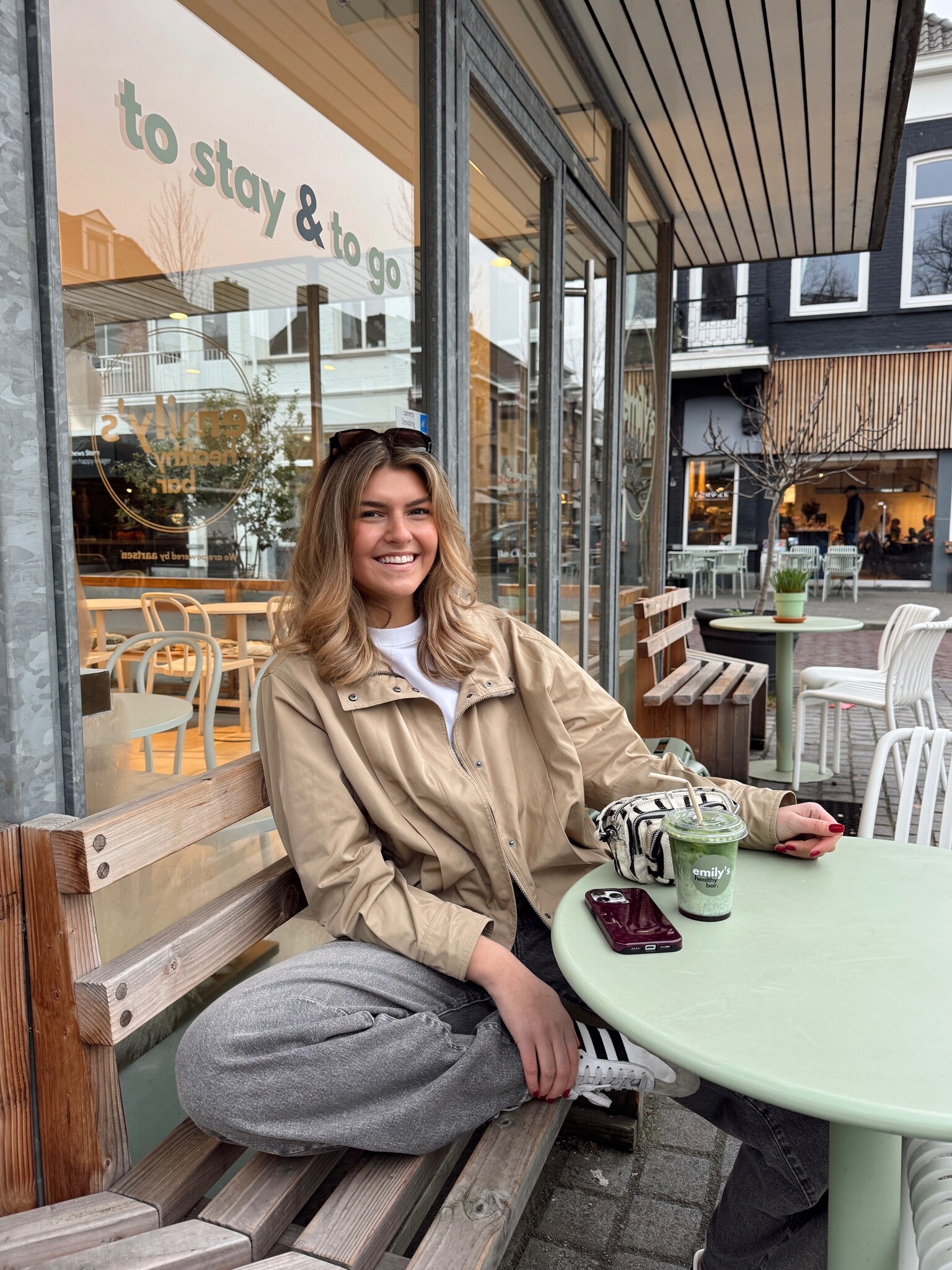 - Bijzonderheden: De jas heeft een hoge kraag, wijde mouwen