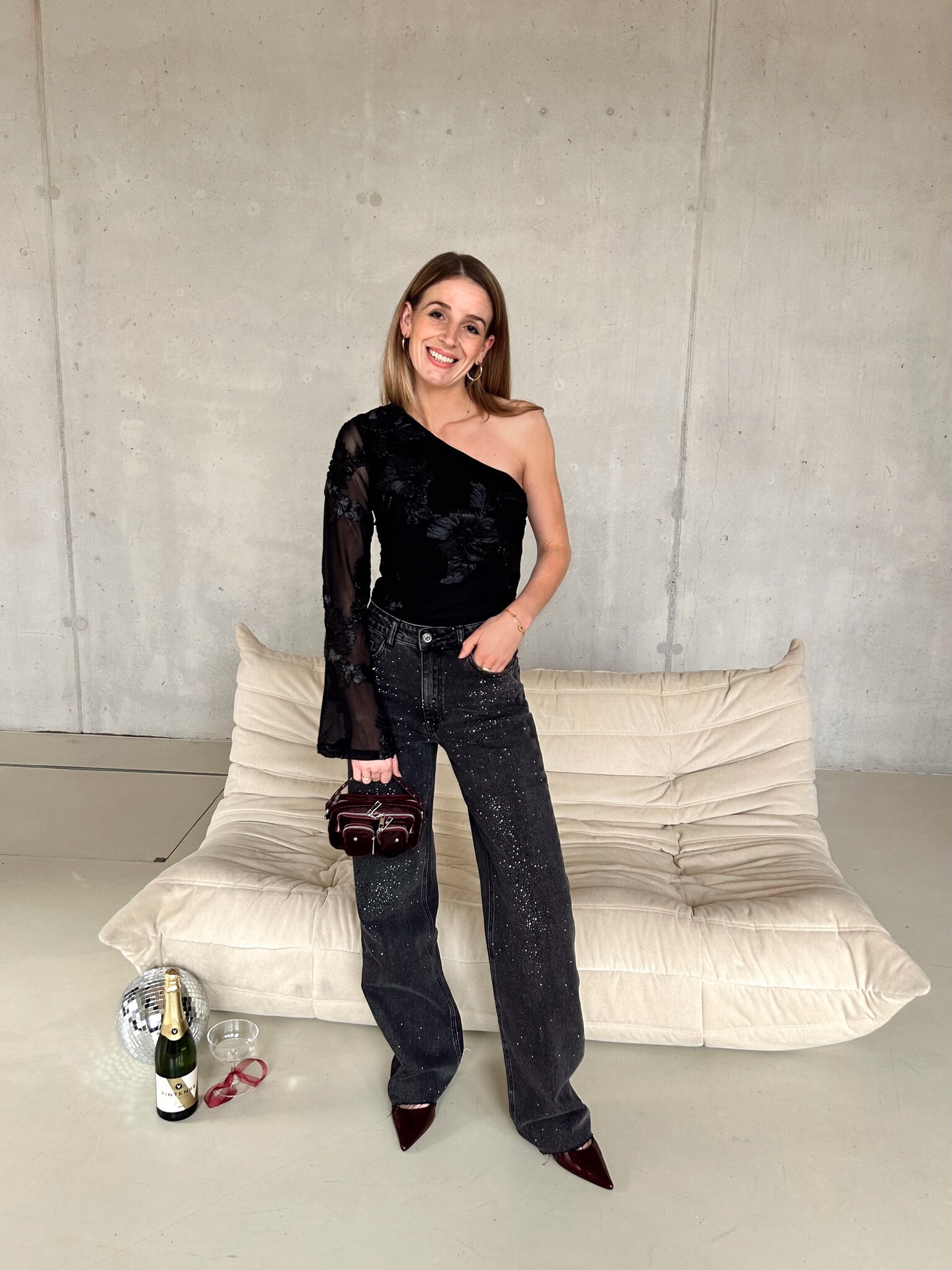 - Bijzonderheden: Mesh blouse in een 3D bloemen mesh kwaliteit, one shoulder