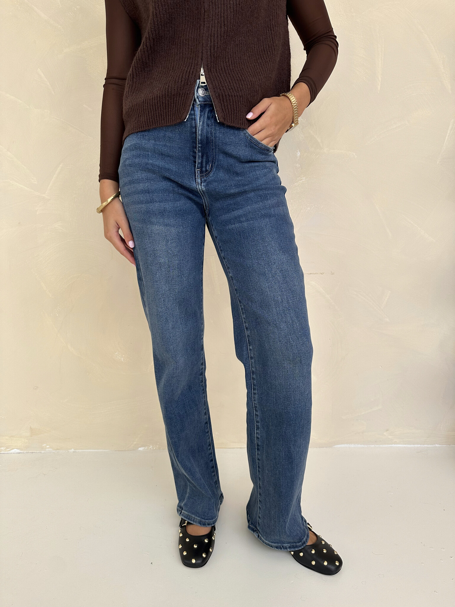 Bijzonderheden: Stretch spijkerbroek, bijpassend ceintuur