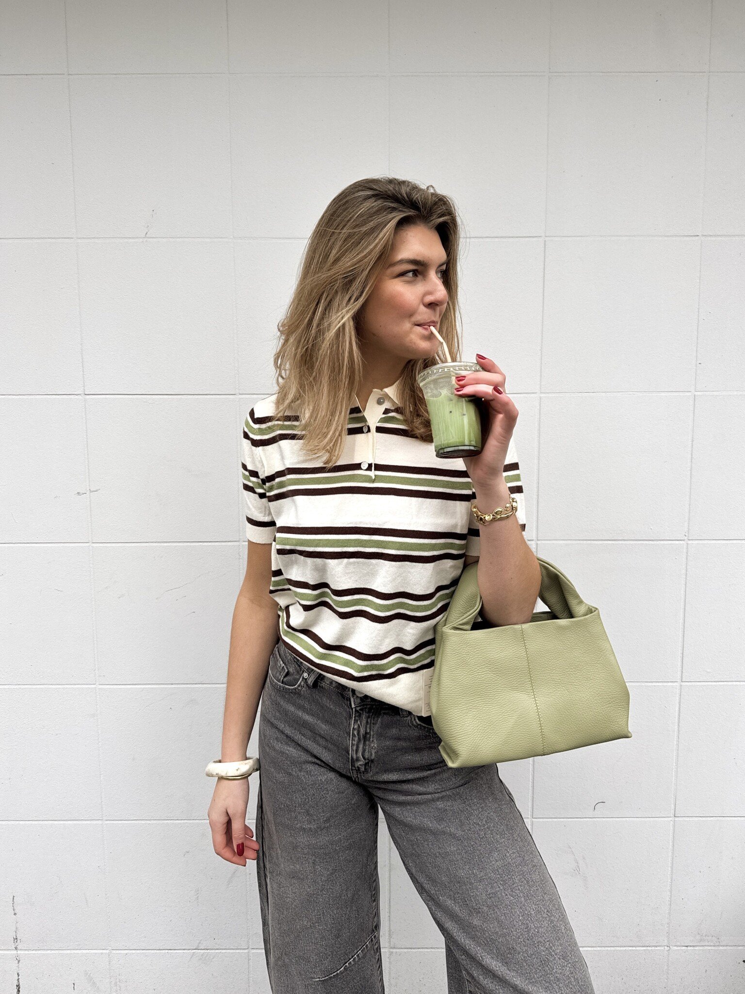 Mau striped polo - beige/green