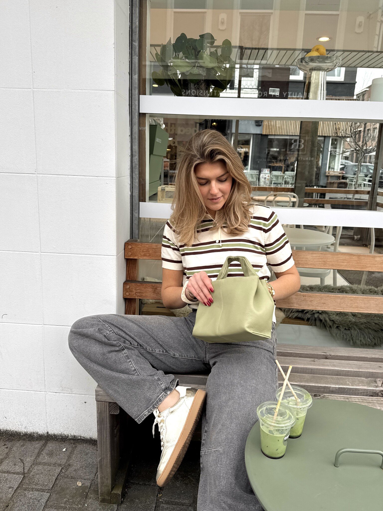 MAU STRIPED POLO - BEIGE/GREEN