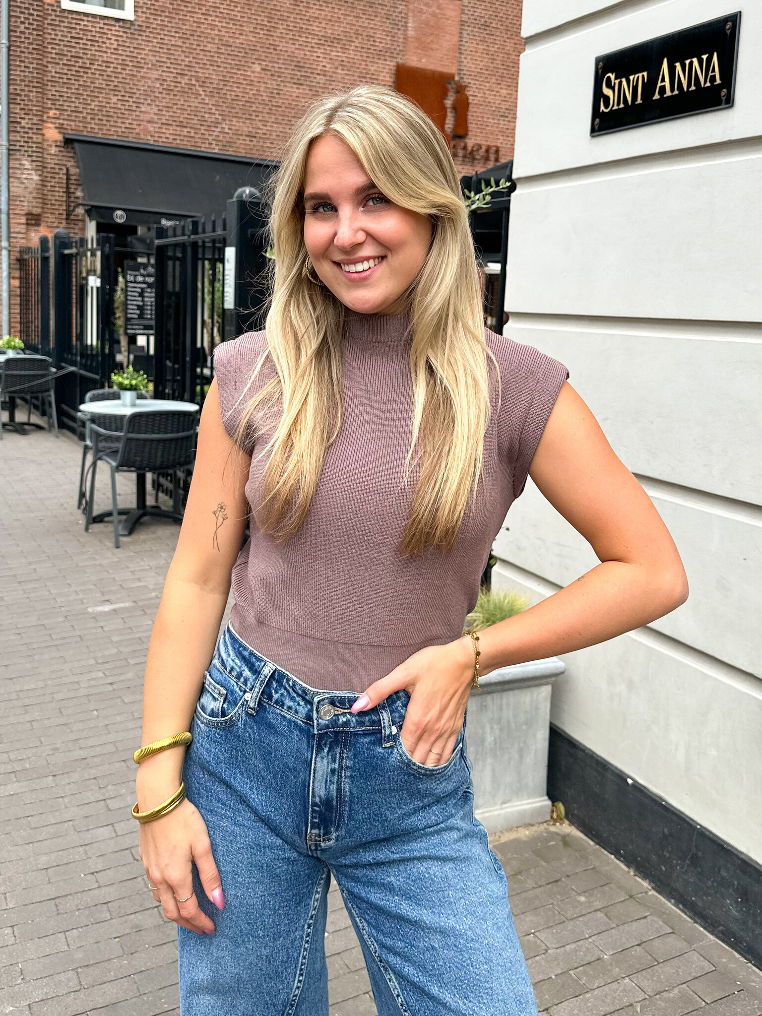 - Bijzonderheden: De top is mouwloos en heeft een ronde halslijn