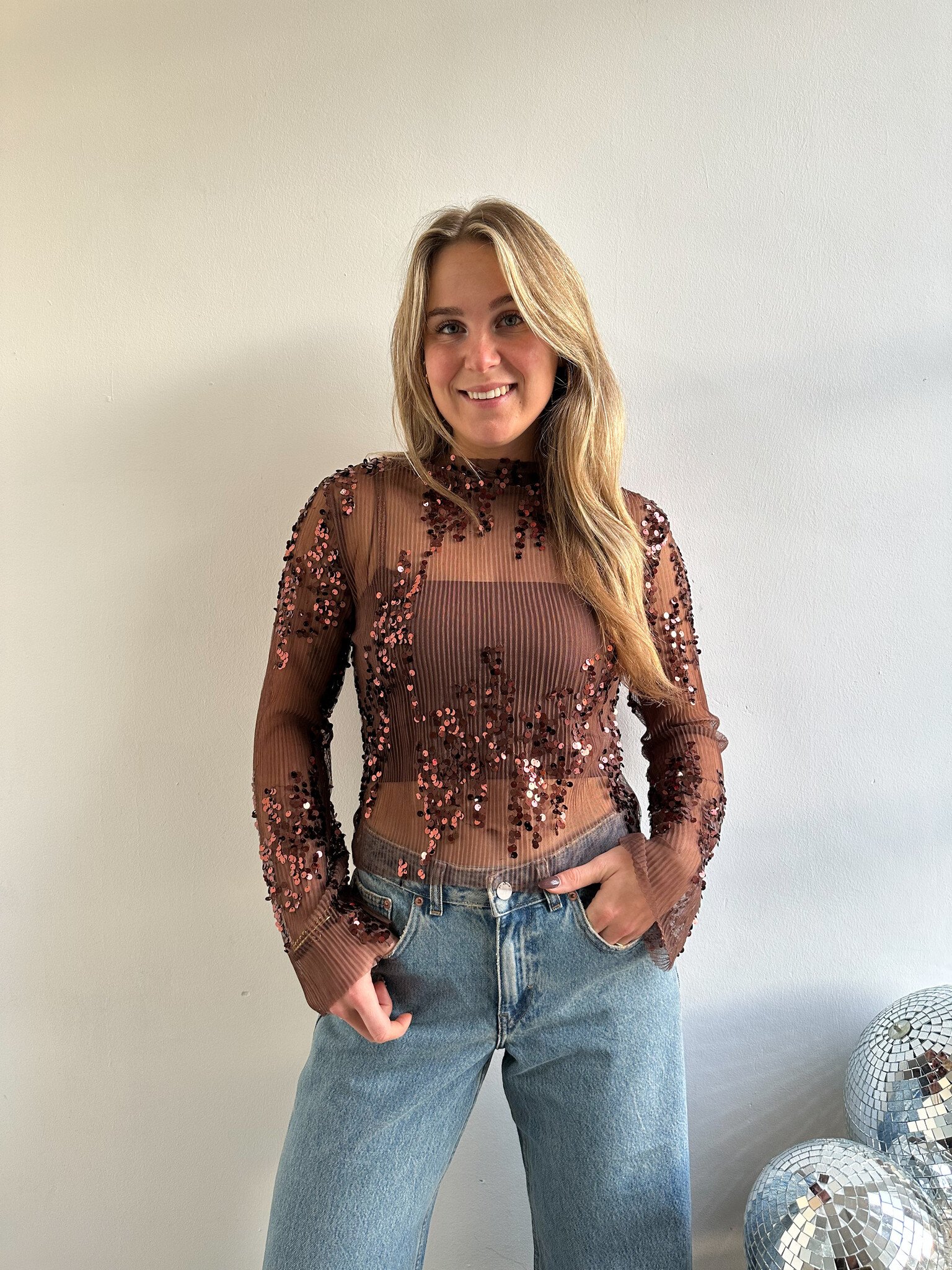- Bijzonderheden: Mesh top, afgewerkt met pailletten
