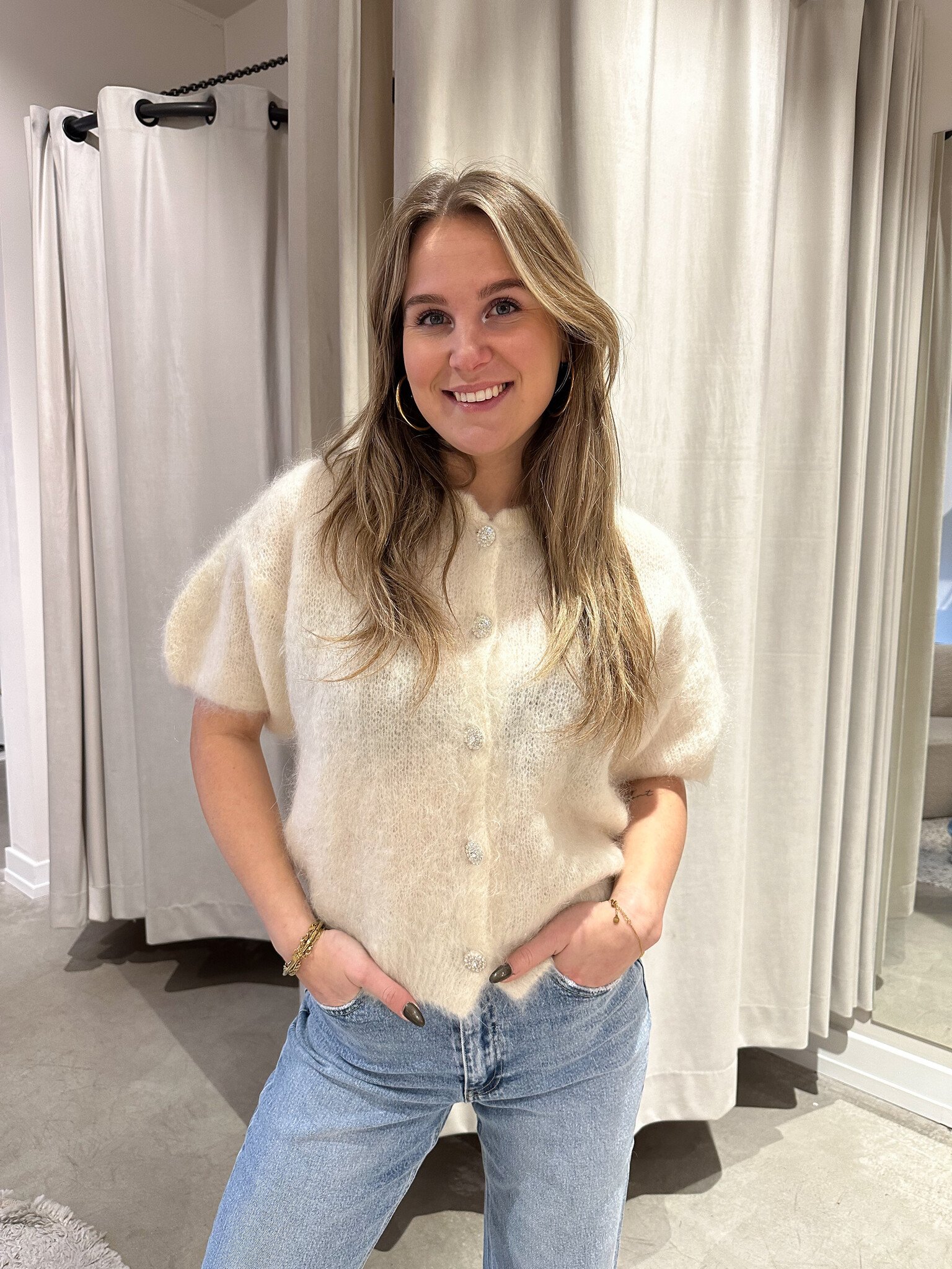 - Bijzonderheden: Het vestje heeft een ronde halslijn en knoopsluiting