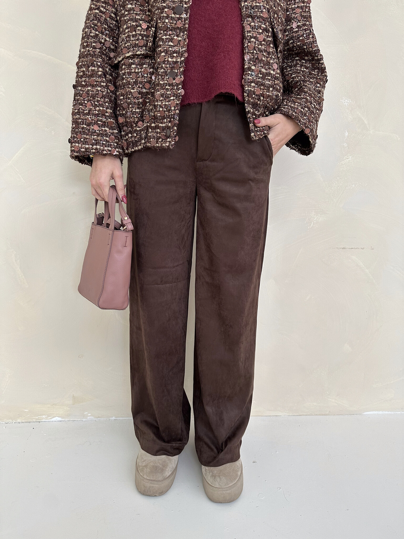 Bijzonderheden: Suede look pantalon, high waist, wide leg