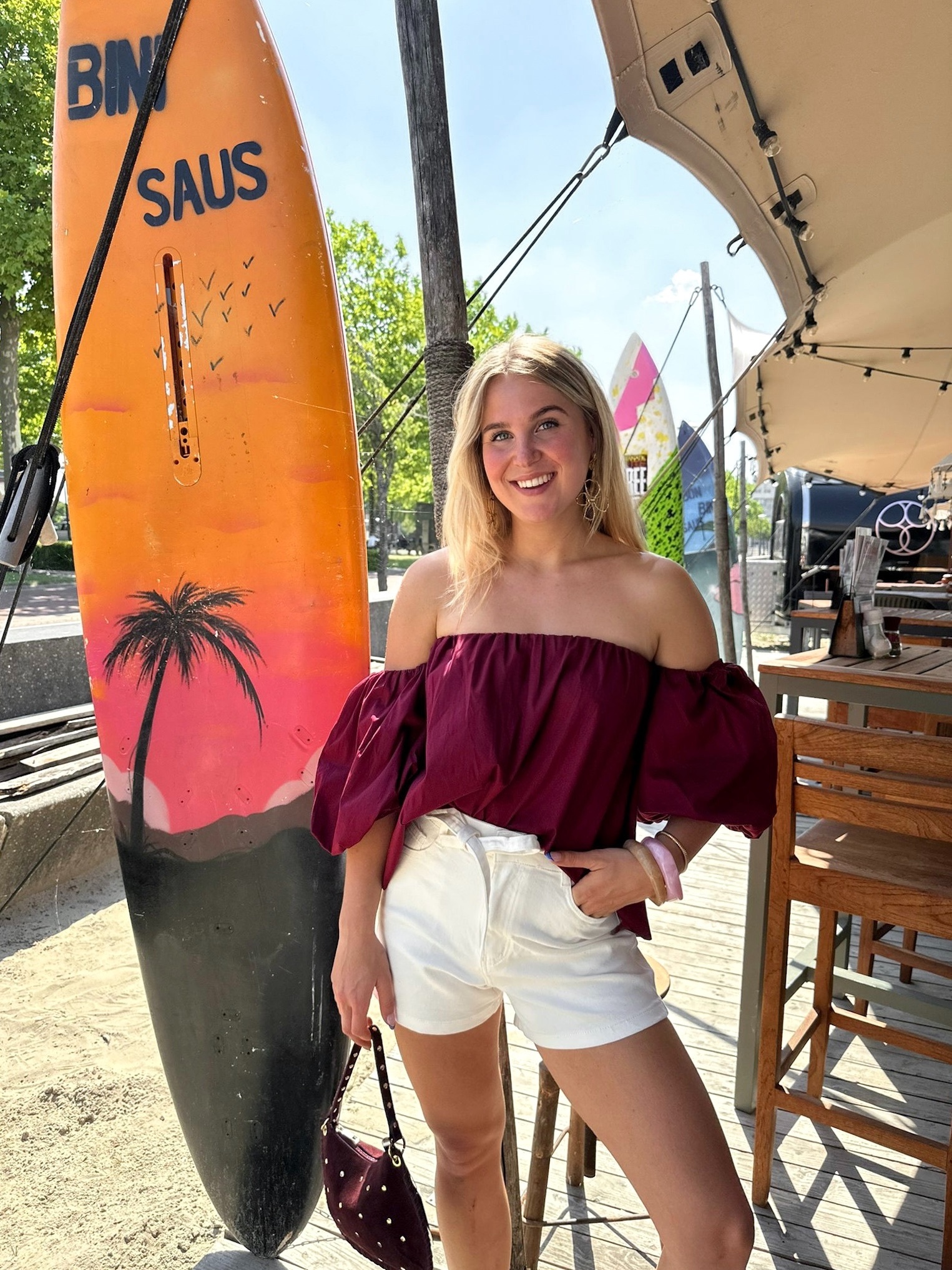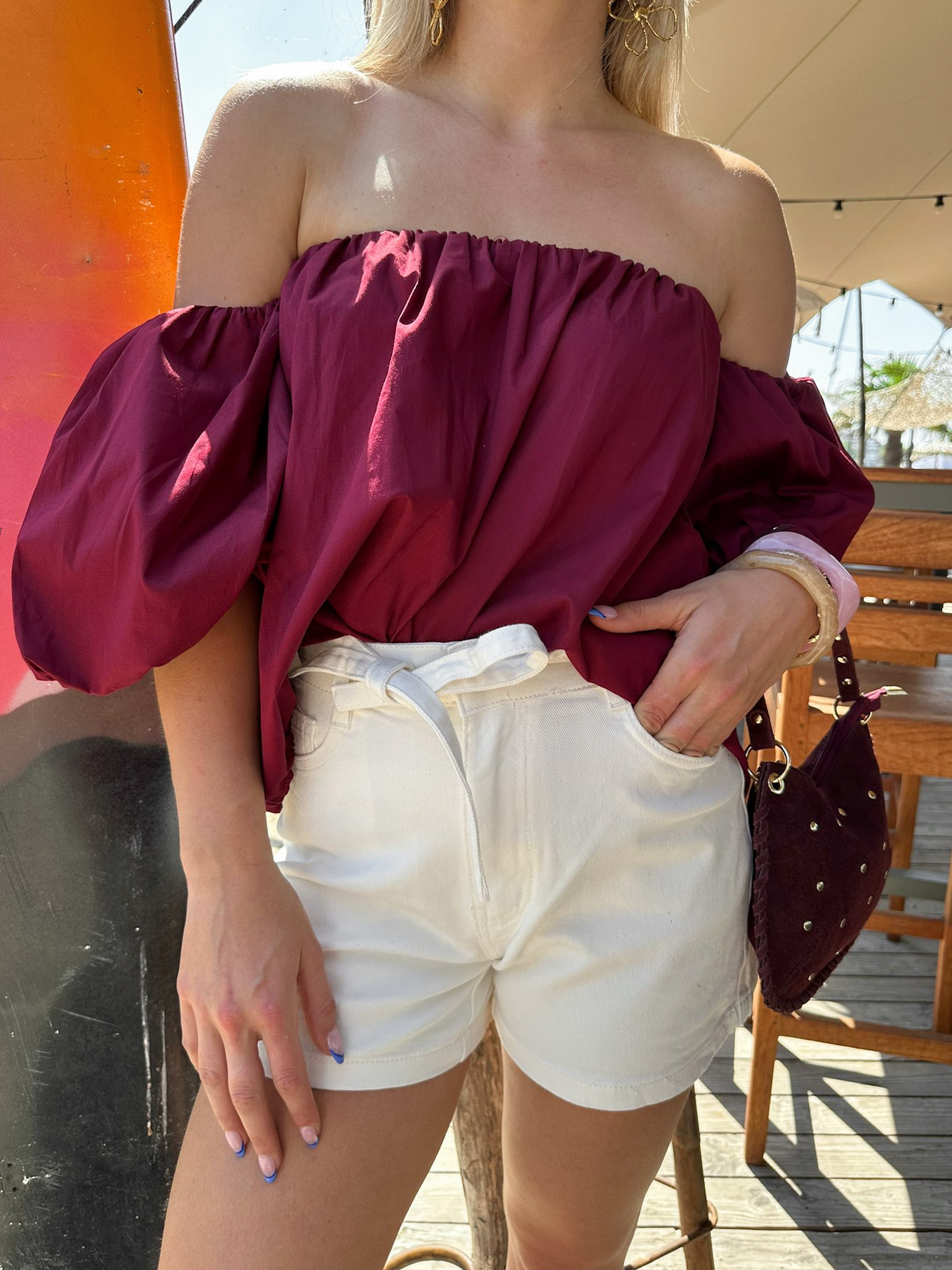 - Bijzonderheden: De short heeft een hoge taille, ceintuur, broekzakken voor en achter