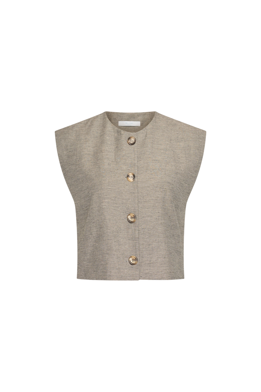 - Bijzonderheden: De gilet heeft ronde halslijn