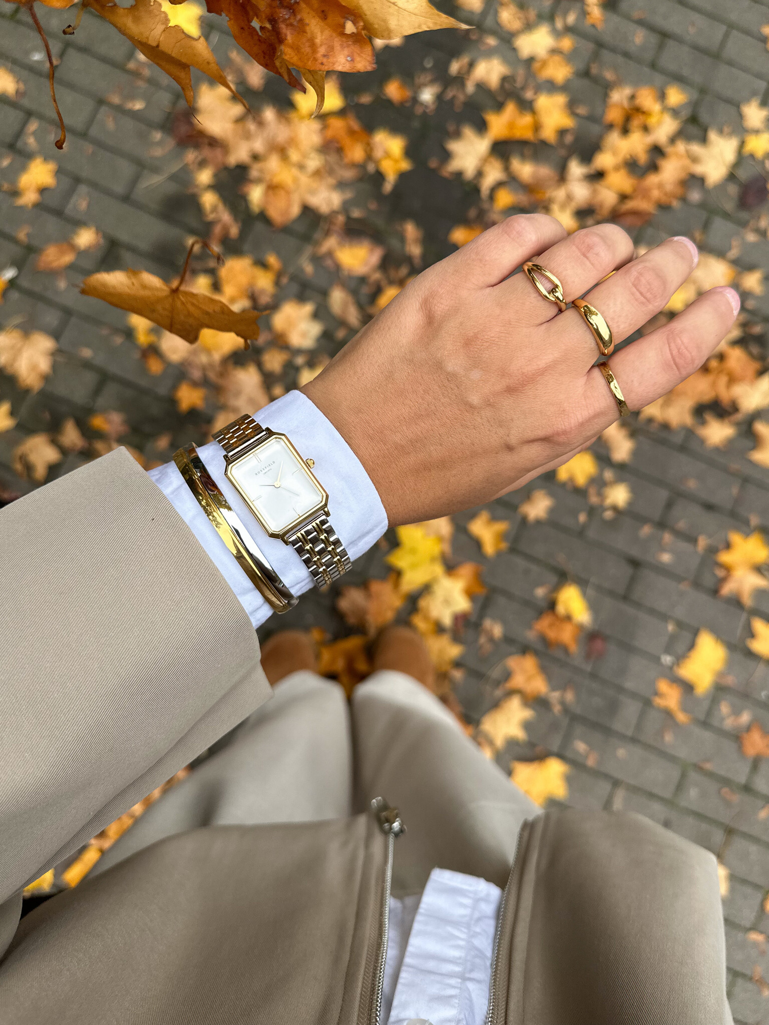| Materiaal | Verguld en gerhodineerd roestvrij staal - Zilver + Goud |