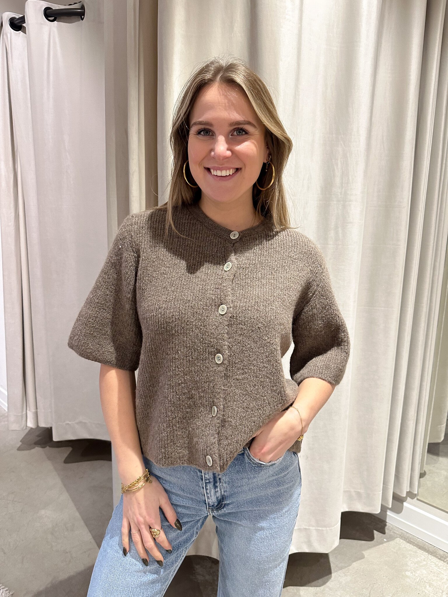 - Bijzonderheden: Mooi vest met knoopjes aan de voorkant, korte mouwen