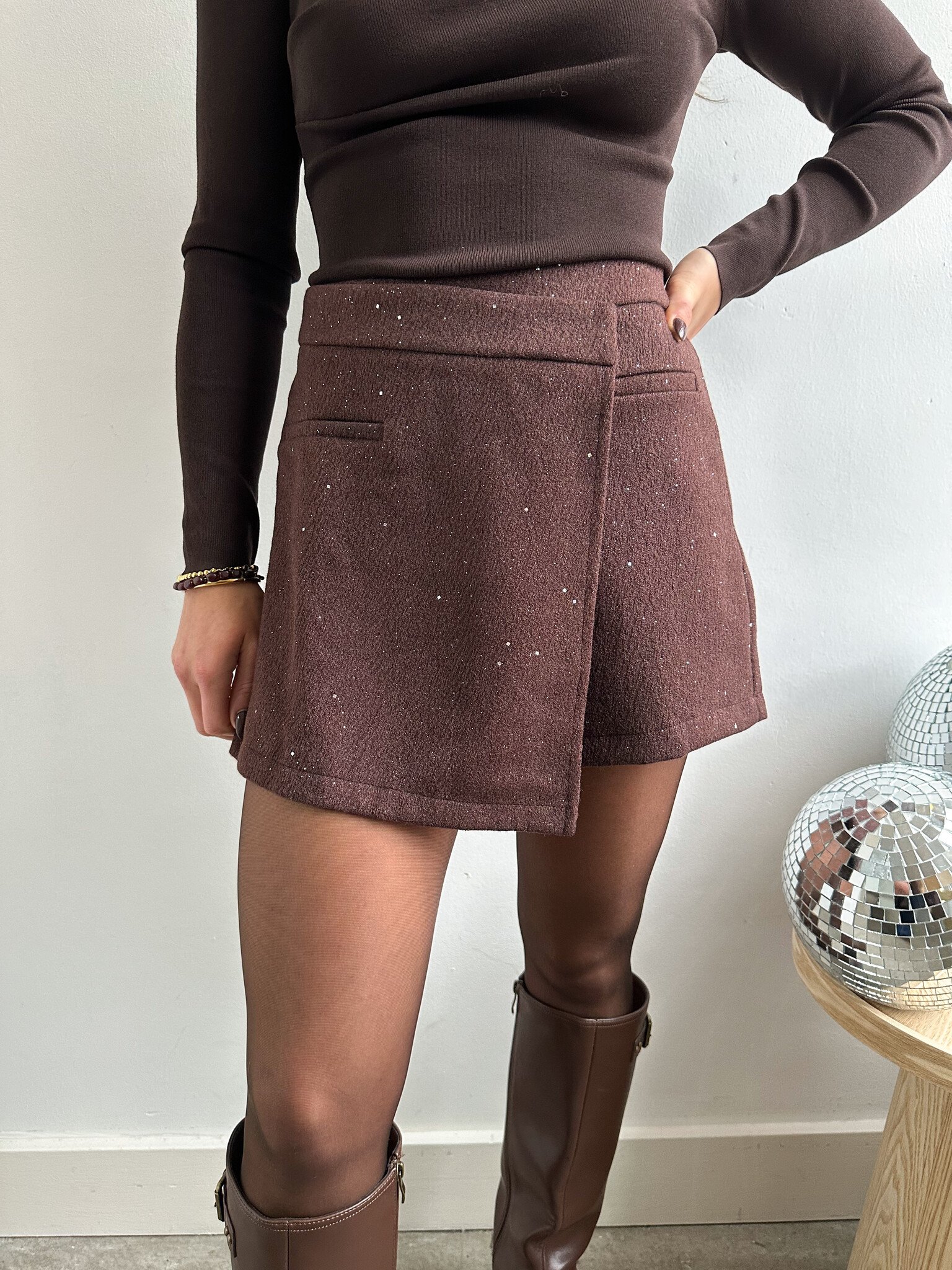 Sparkel skort - brown