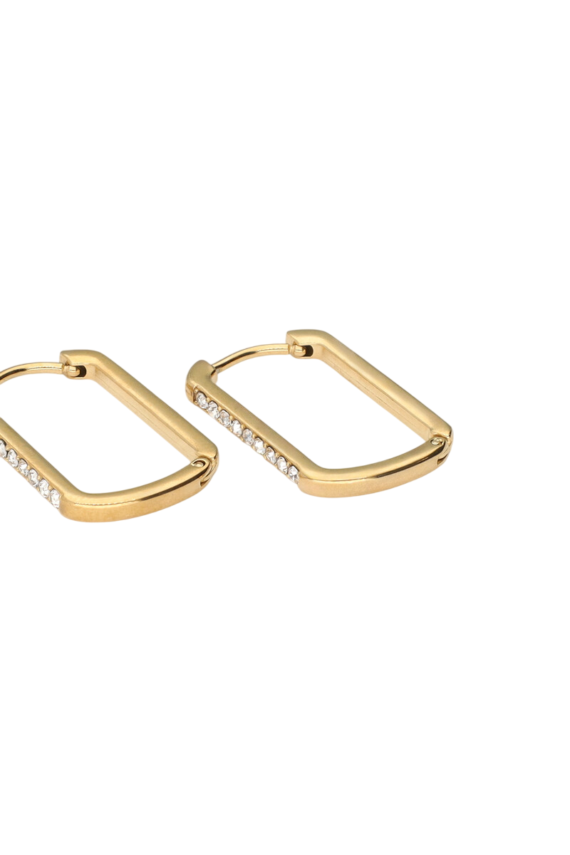 SQUARE STRASS HOOP EARRINGS - GOLD
