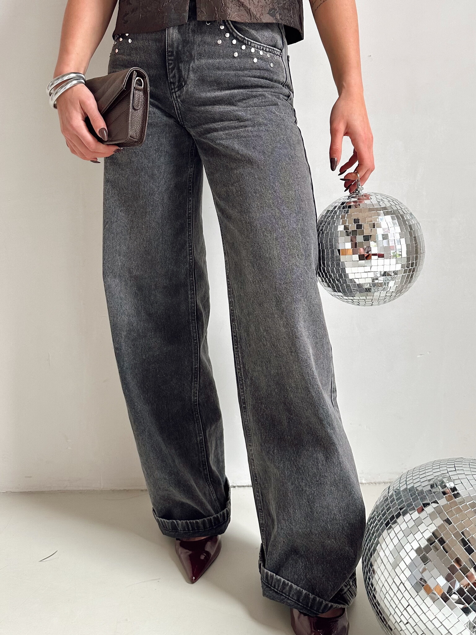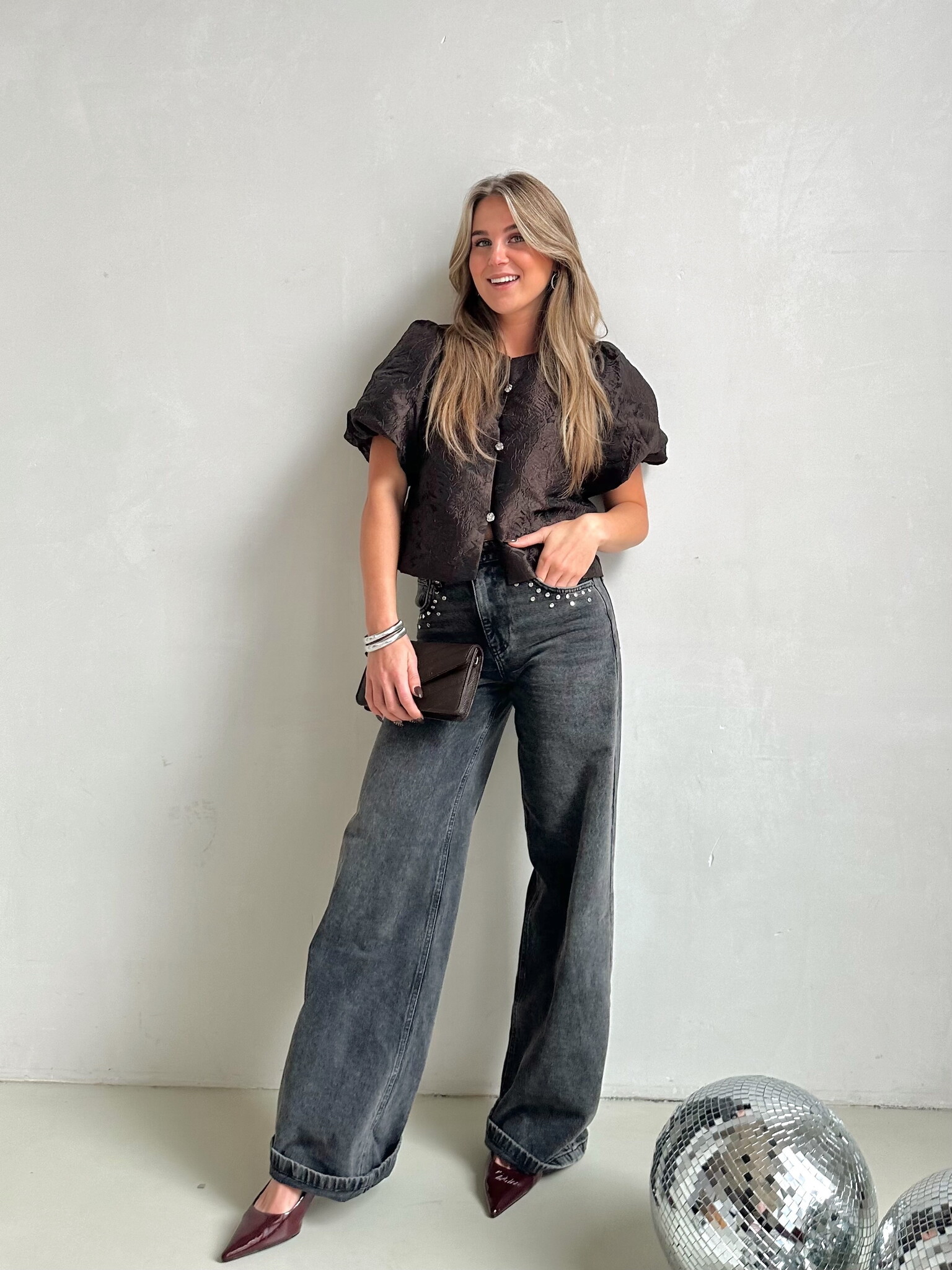 - Bijzonderheden: De broek heeft wijde pijpen, high waisted, broekzakken, riem lussen